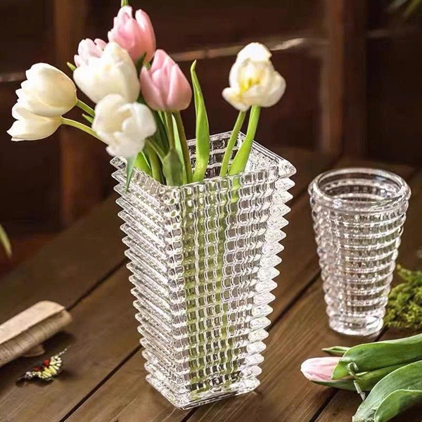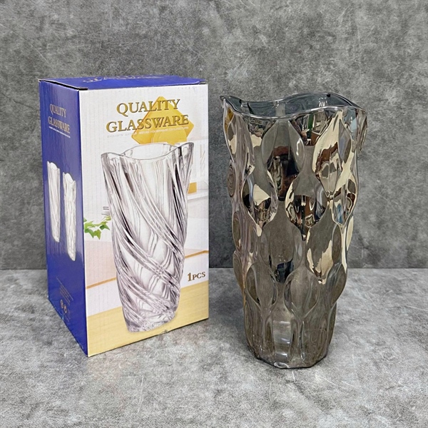GHA912 – Bình hoa thuỷ tinh dáng loe ( vân nổi ô vuông )