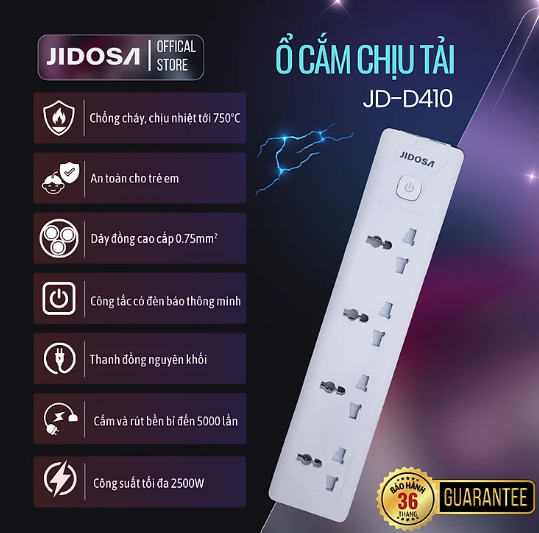 D410 – Ổ cắm điện JIDOSA, 4 ổ 3 chấu, cs 2500W