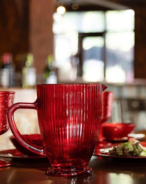 Bình thủy tinh sắc màu kèm nắp tre 1L CRISTA, màu Xanh vân lưới